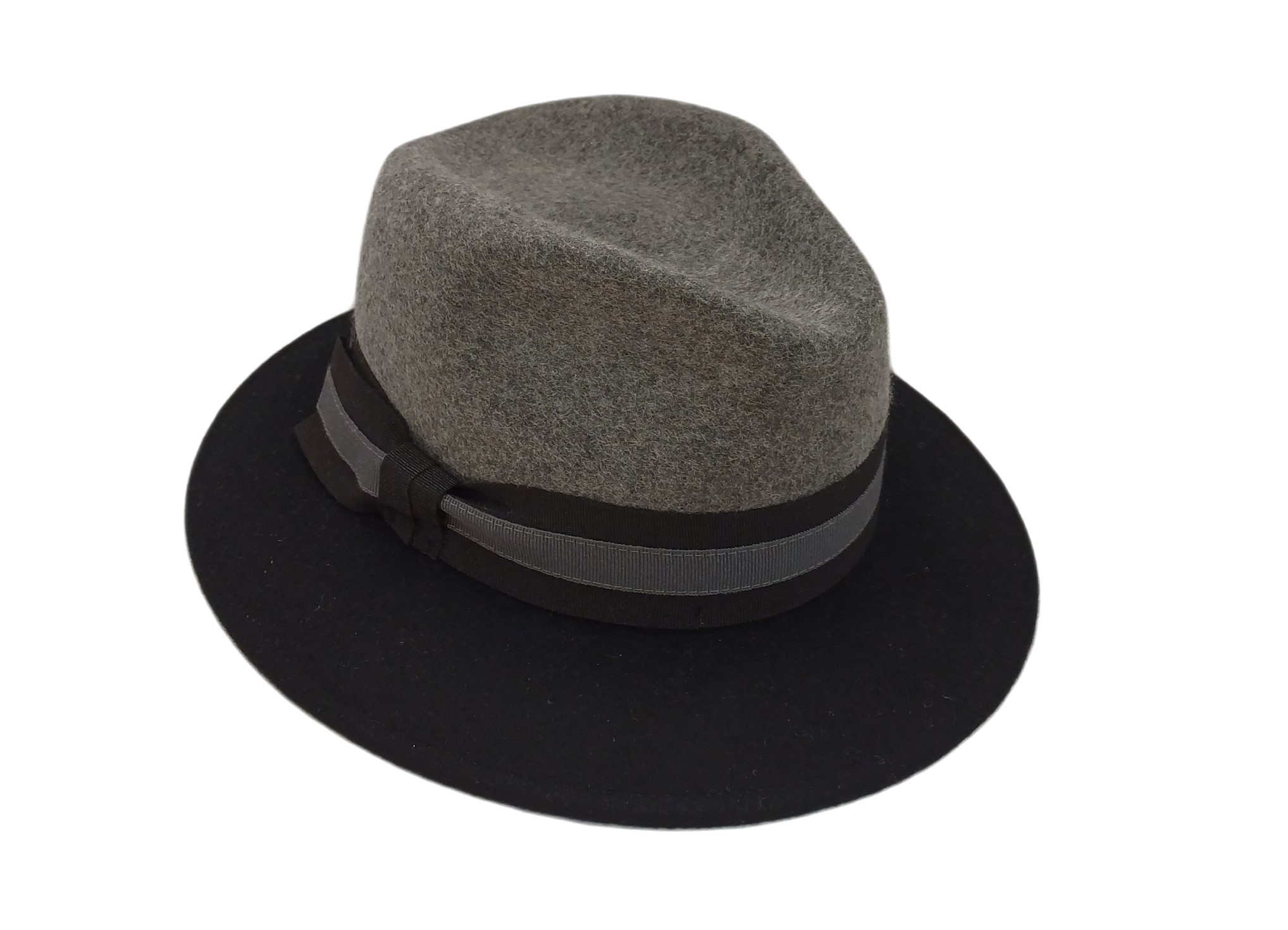 Damenhut in schwarz und grau mit schwarzem Ripsband.
