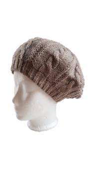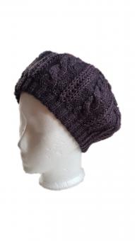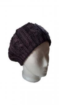 Baskenmütze in Strickoptik in brombeer, grau und braun