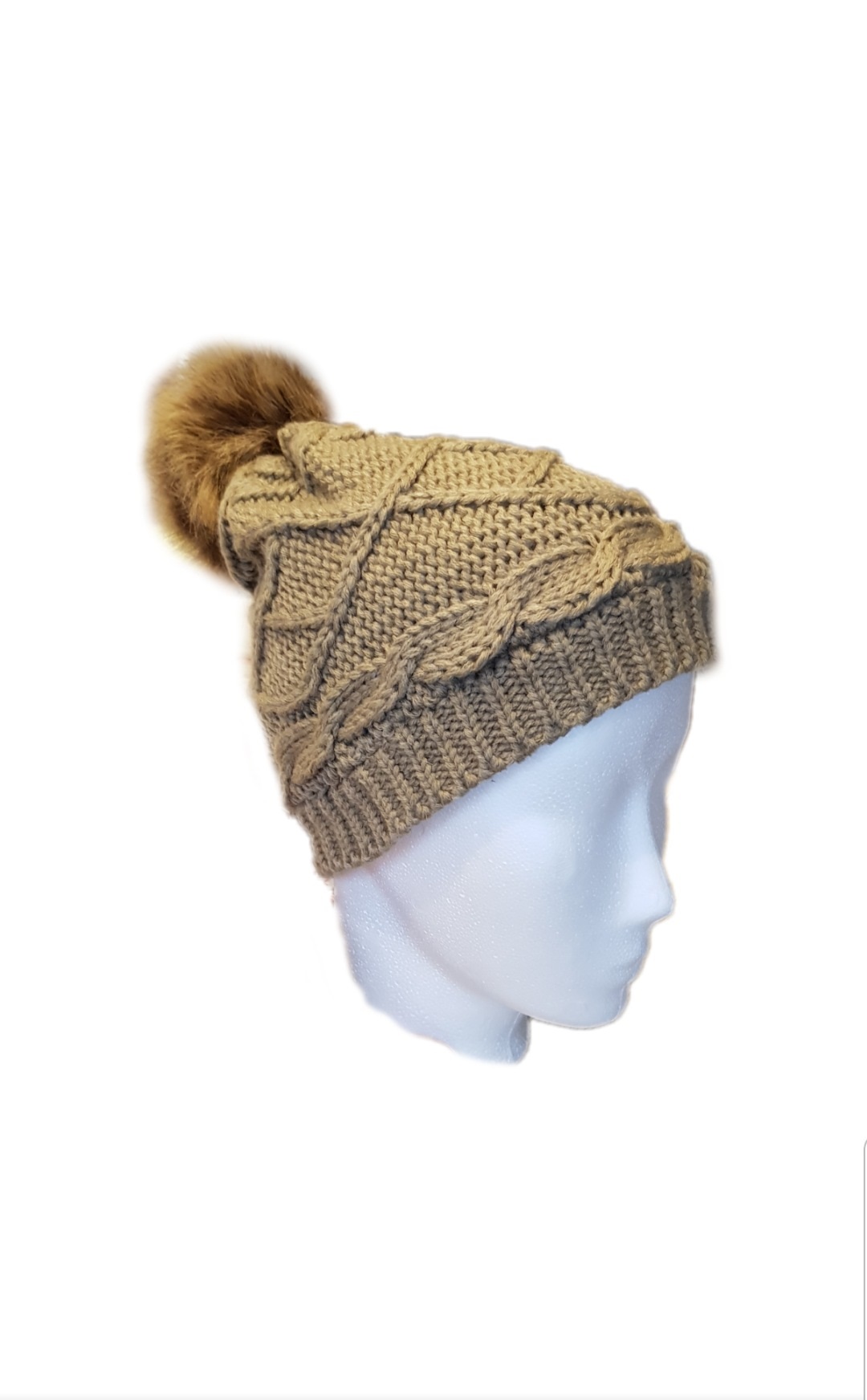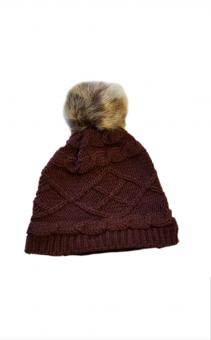 Bommelmütze in braun und bordeaux mit Fleeceausfütterung