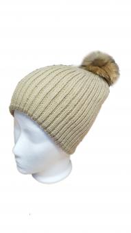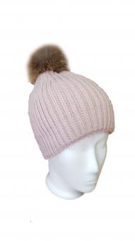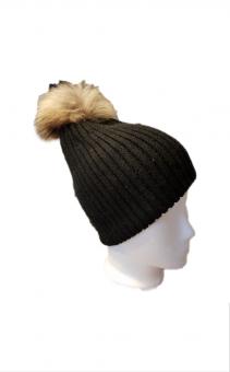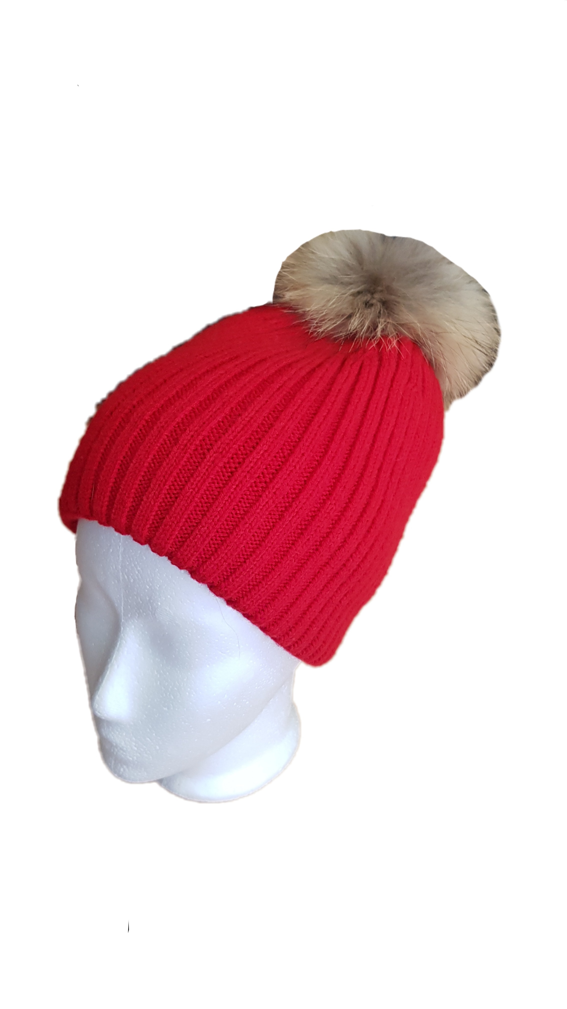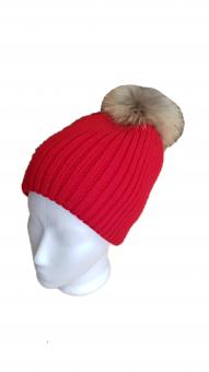 Bommelmütze in schwarz, rot, beige oder rosa mit Echtfellbommel