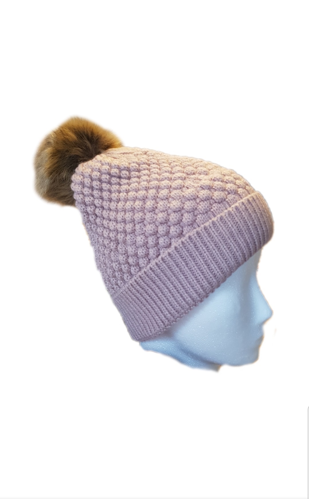 Bommelmütze mit Kunstfellbommel und Fleeceausfütterung