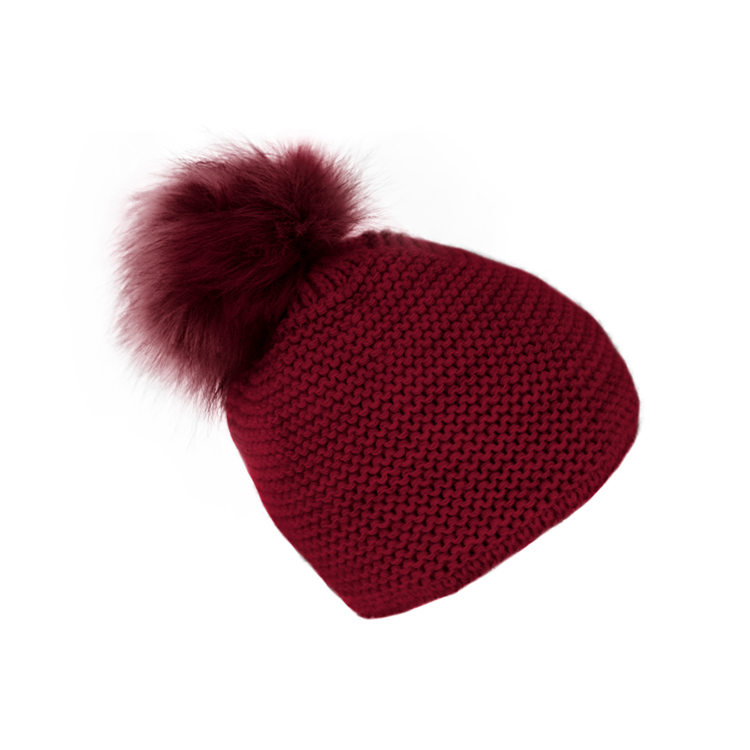 Bommelmütze mit Kunstfellbommel und Fleecfutterin marine, beige, himmelblau, hellgrau, schwarz, weinrot und natur