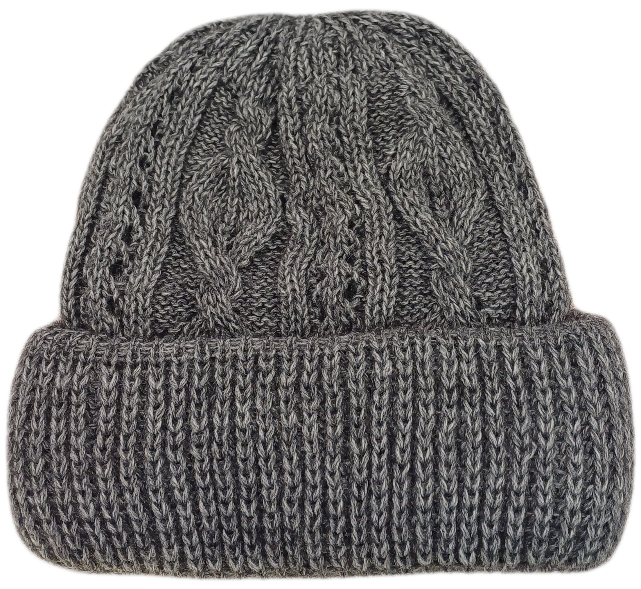 Damenmütze in anthrazit mit Strickmuster und Strickfutter.