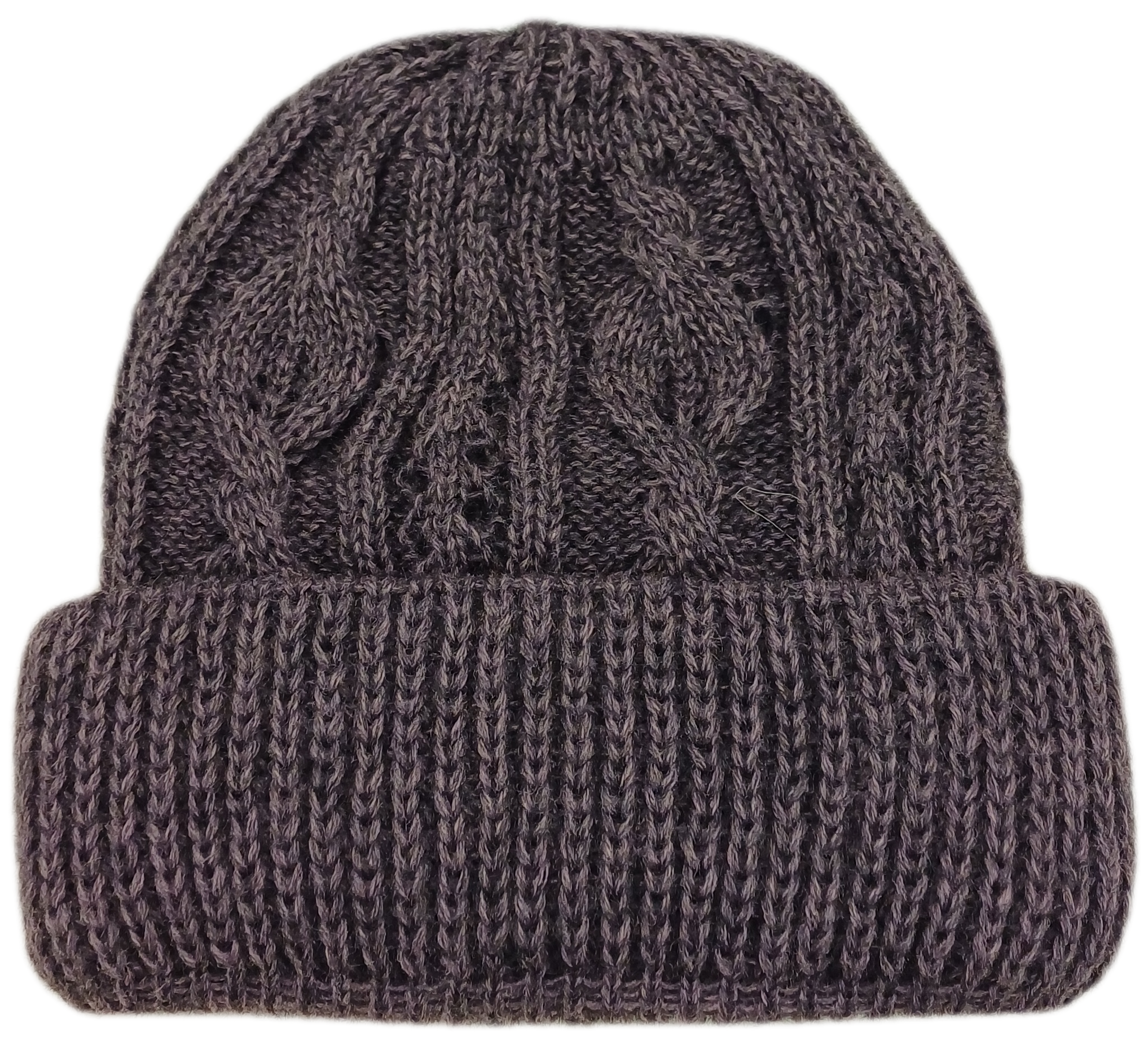 Damenmütze in lila mit Strickmuster und Strickfutter.