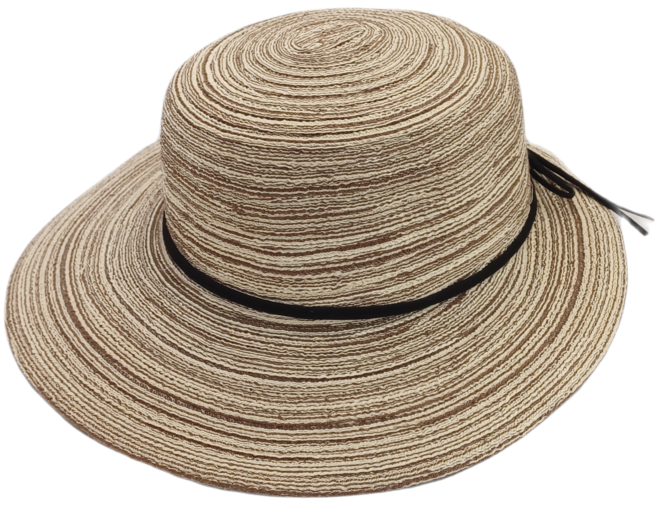 Damenhut in braun gemustert mit dezentem Kunstlederband.