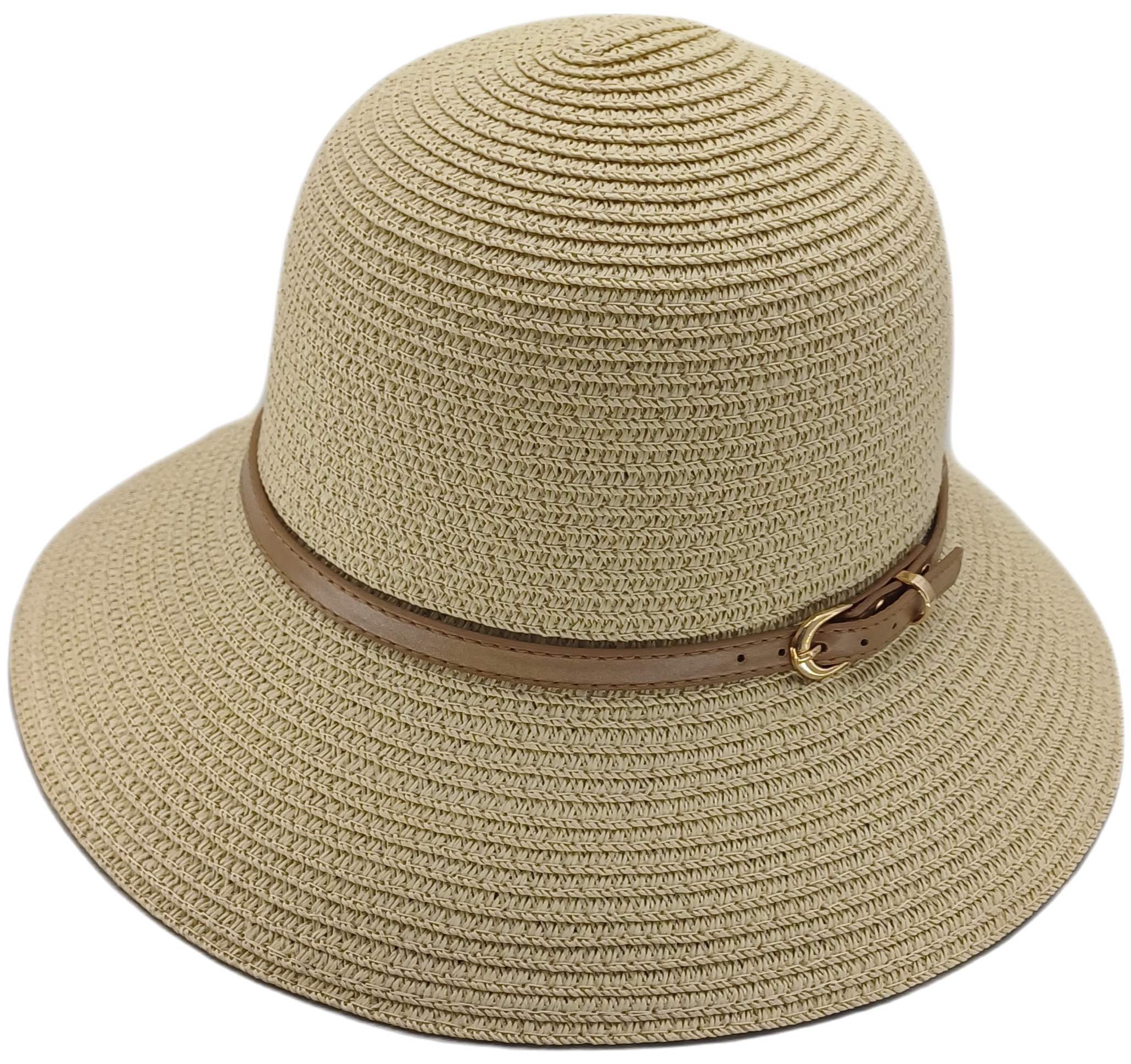 Damenhut in natur mit braunem Kunstlederband.