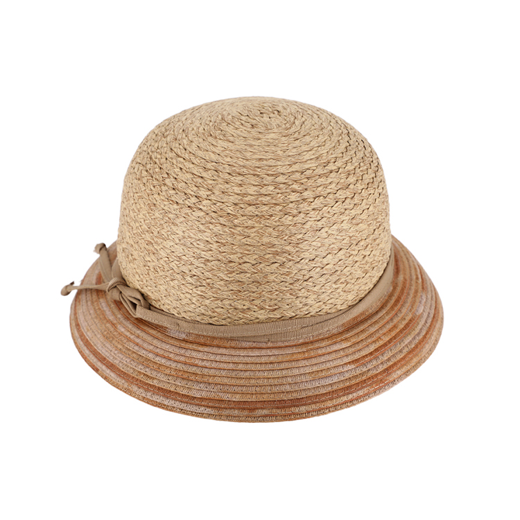 Damenhut mit abgesetzter Krempe und farblich passender Garnitur.