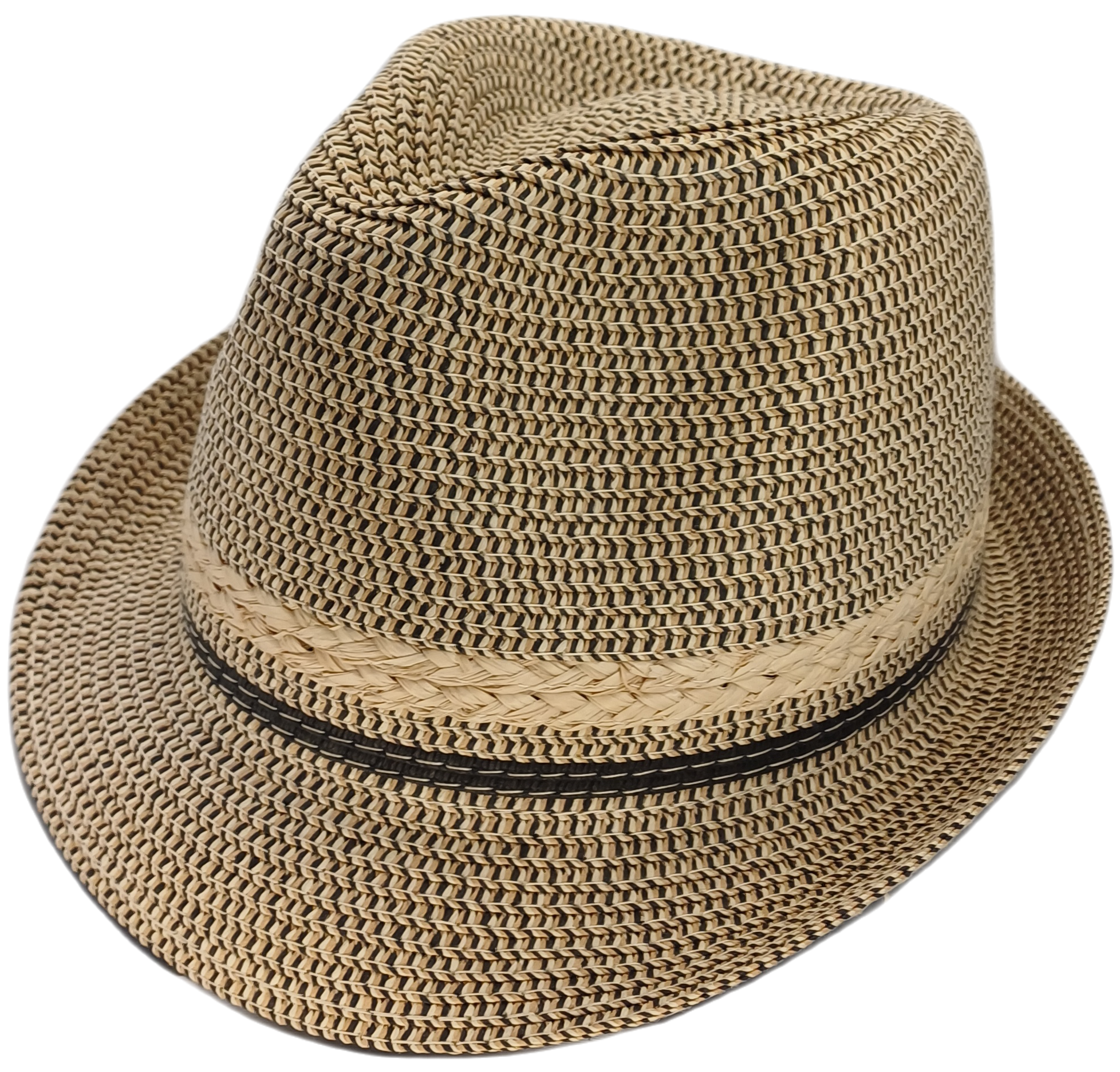 Sportlicher Damenhut in beige gemustert mit farblich passenden Streifen.