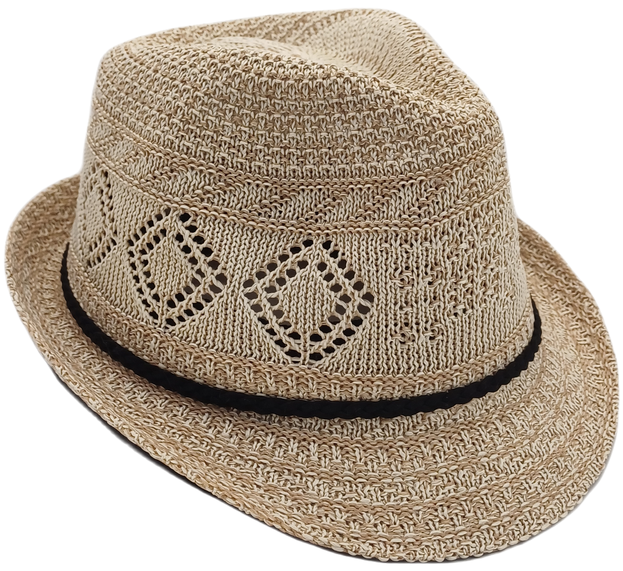 Sommerhut in braun gemustert mit schwarzem Kunstlederband