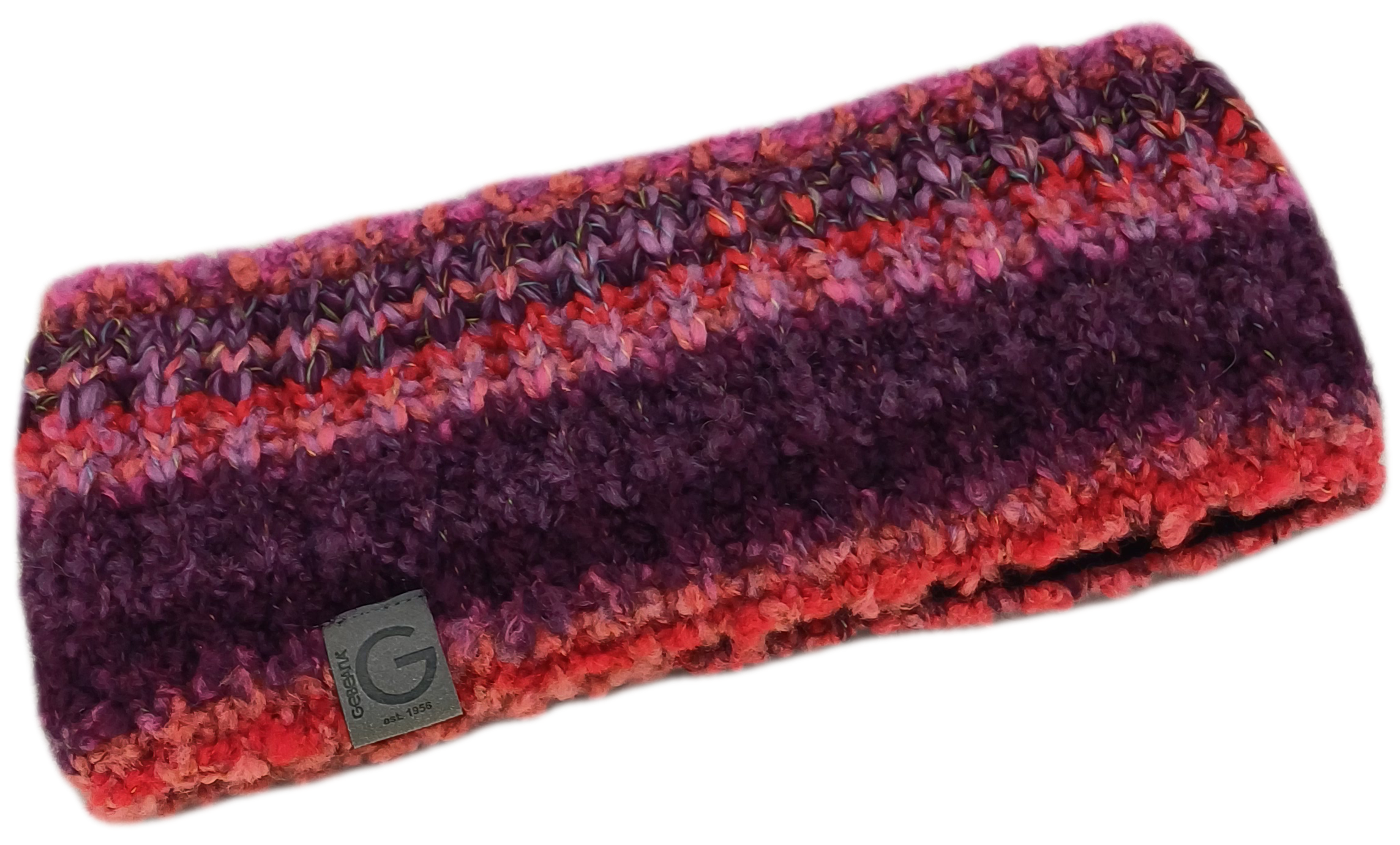 Stirnband in violett, rosa gemustert mit Fleecefutter.