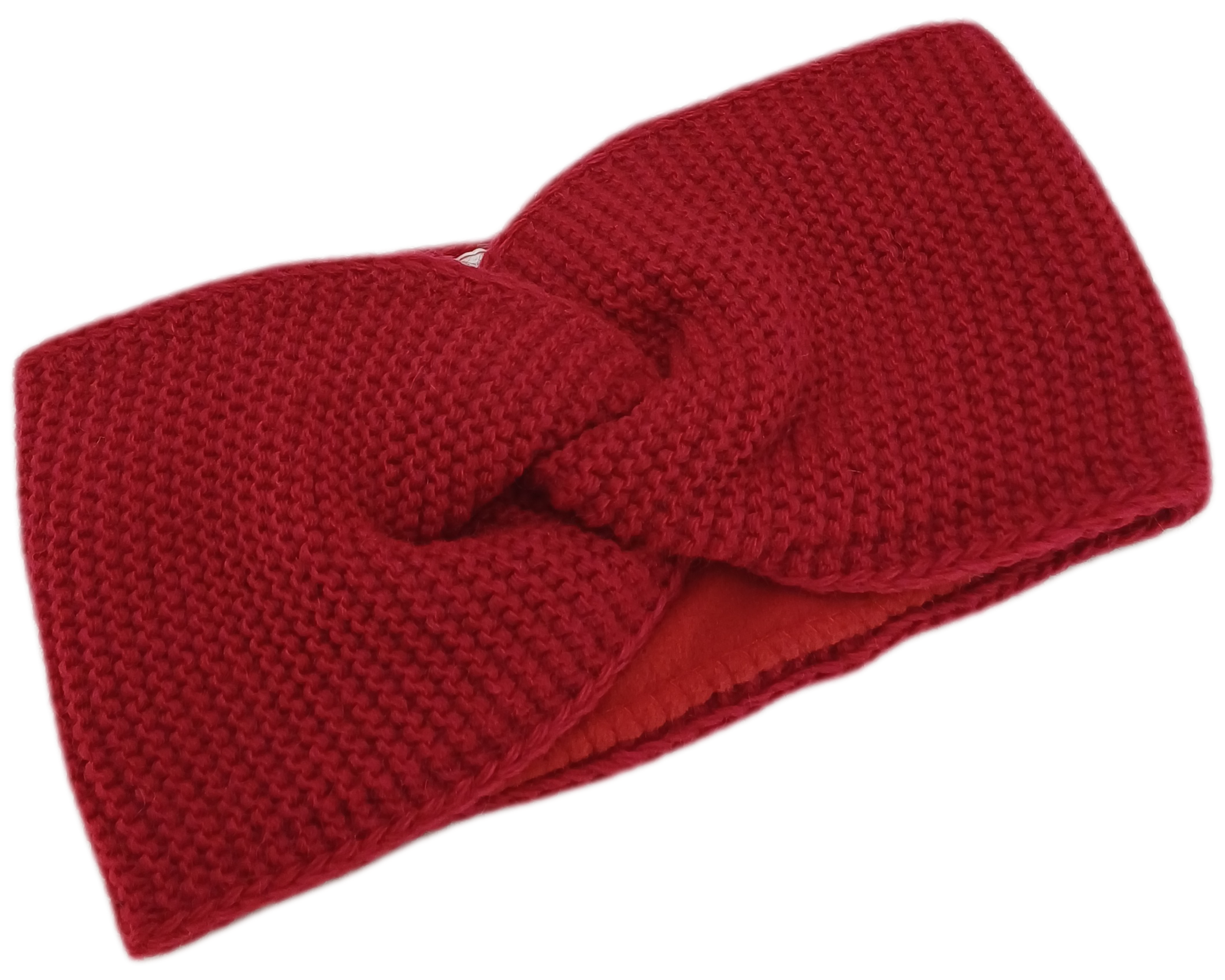 Stirnband in rot mit Fleecefutter und vorne verschlungen.