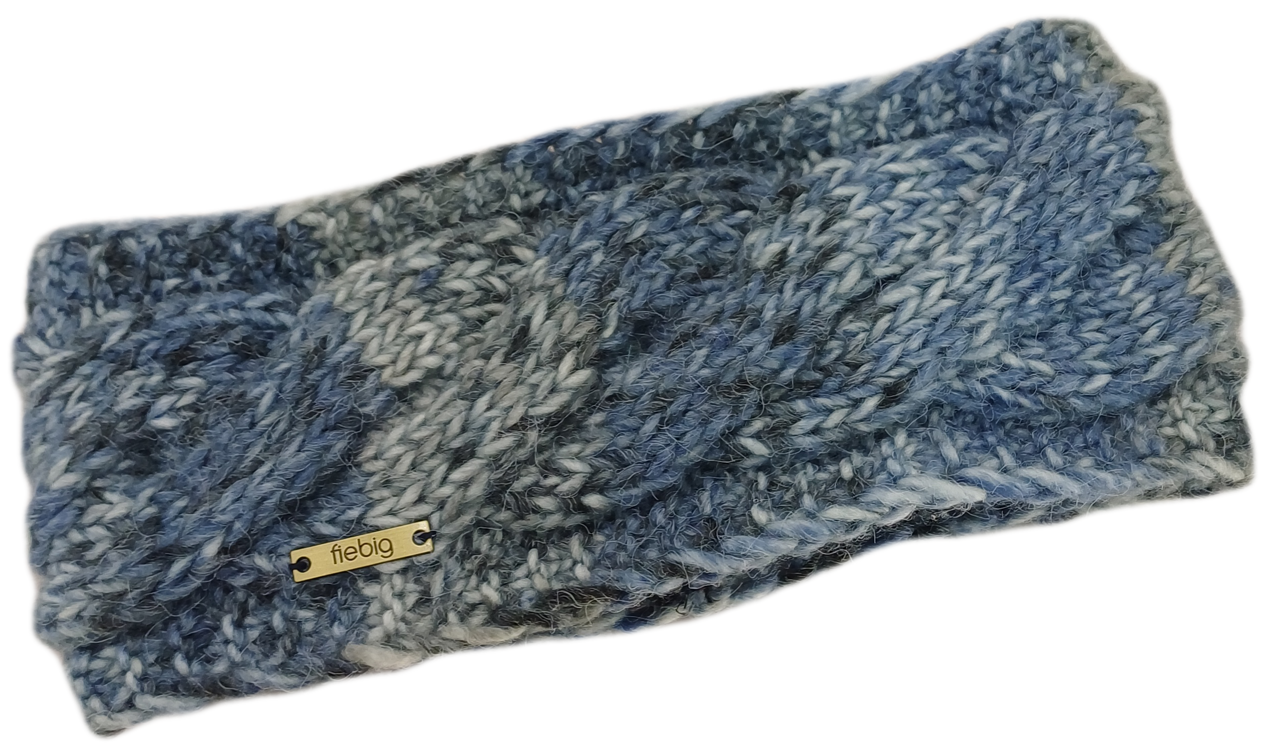 Stirnband in blau meliert mit Zopfmuster und Fleecefutter