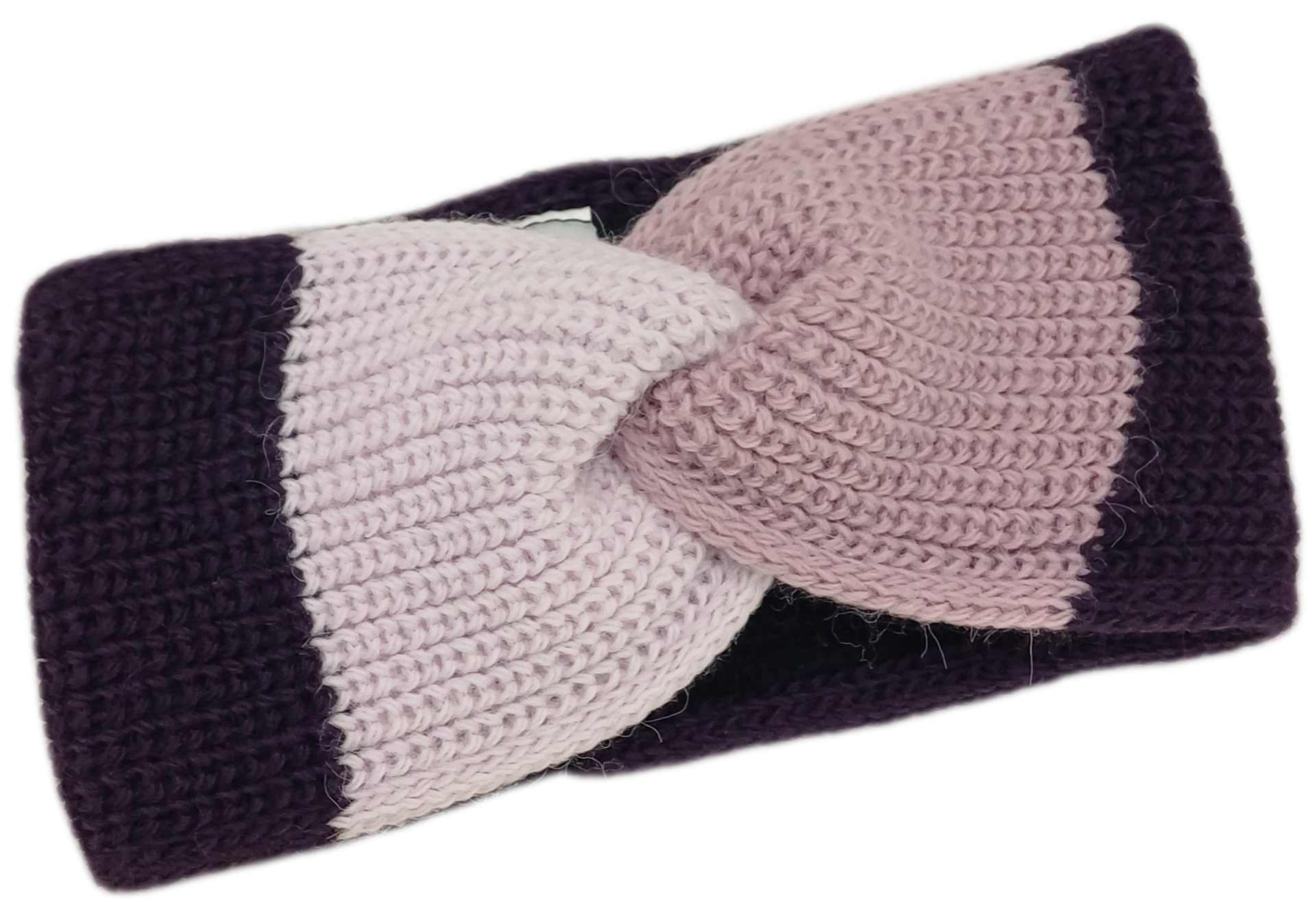 Stirnband in violett und rosa mit Fleece ausgefüttert und vorne verschlungen.