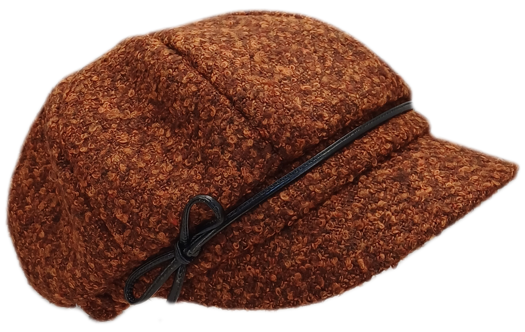 Ballonkappe aus rost-farbenem Boucle-Stoff mit Fleecefutter.