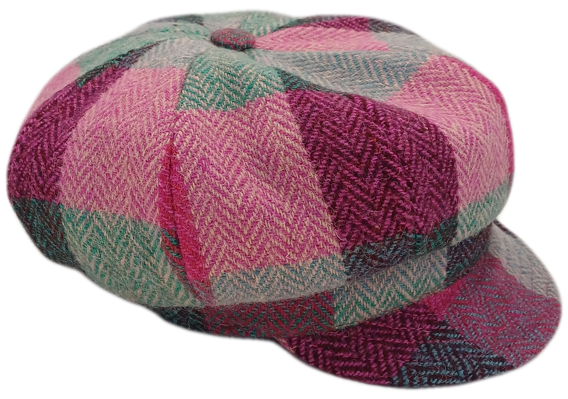 Ballonkappe aus Harrys Tweed mit Patchwork-Muster und Baumwollfutter.