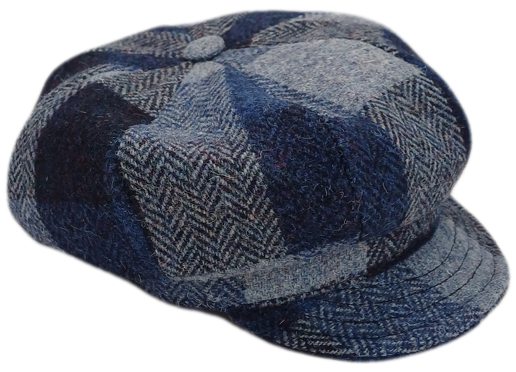 Ballonkappe aus Harrys Tweed mit Patchwork-Muster und Baumwollfutter.