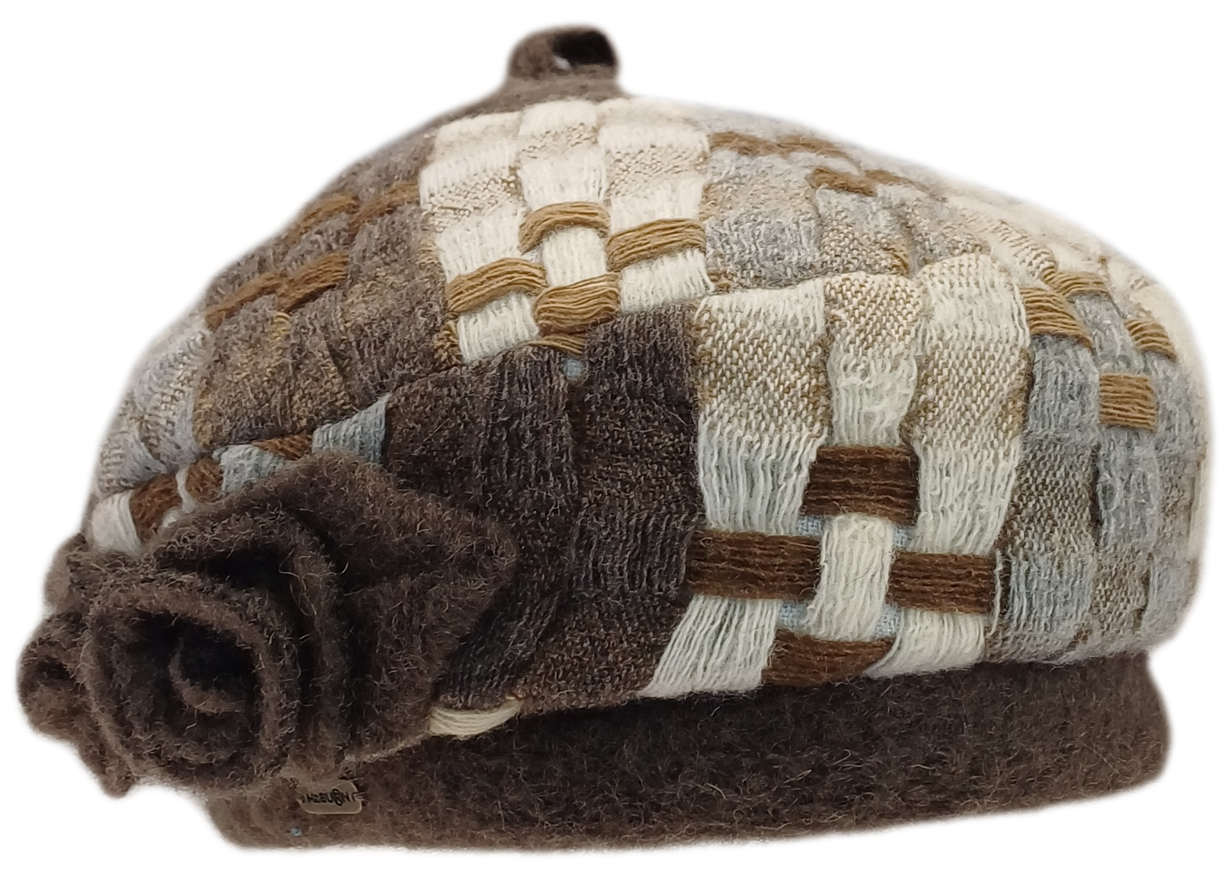 Baskenmütze in braun gemustert mit Fleecefutter