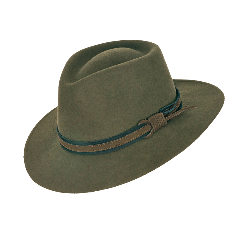 Herrenhut in khahi mit braunem Echtlederband