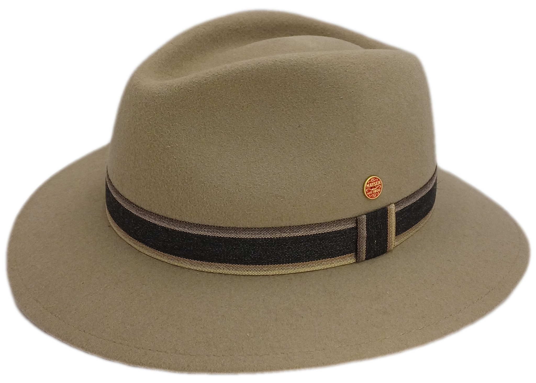 Herrenhut in beige mit passendem Stoffband.