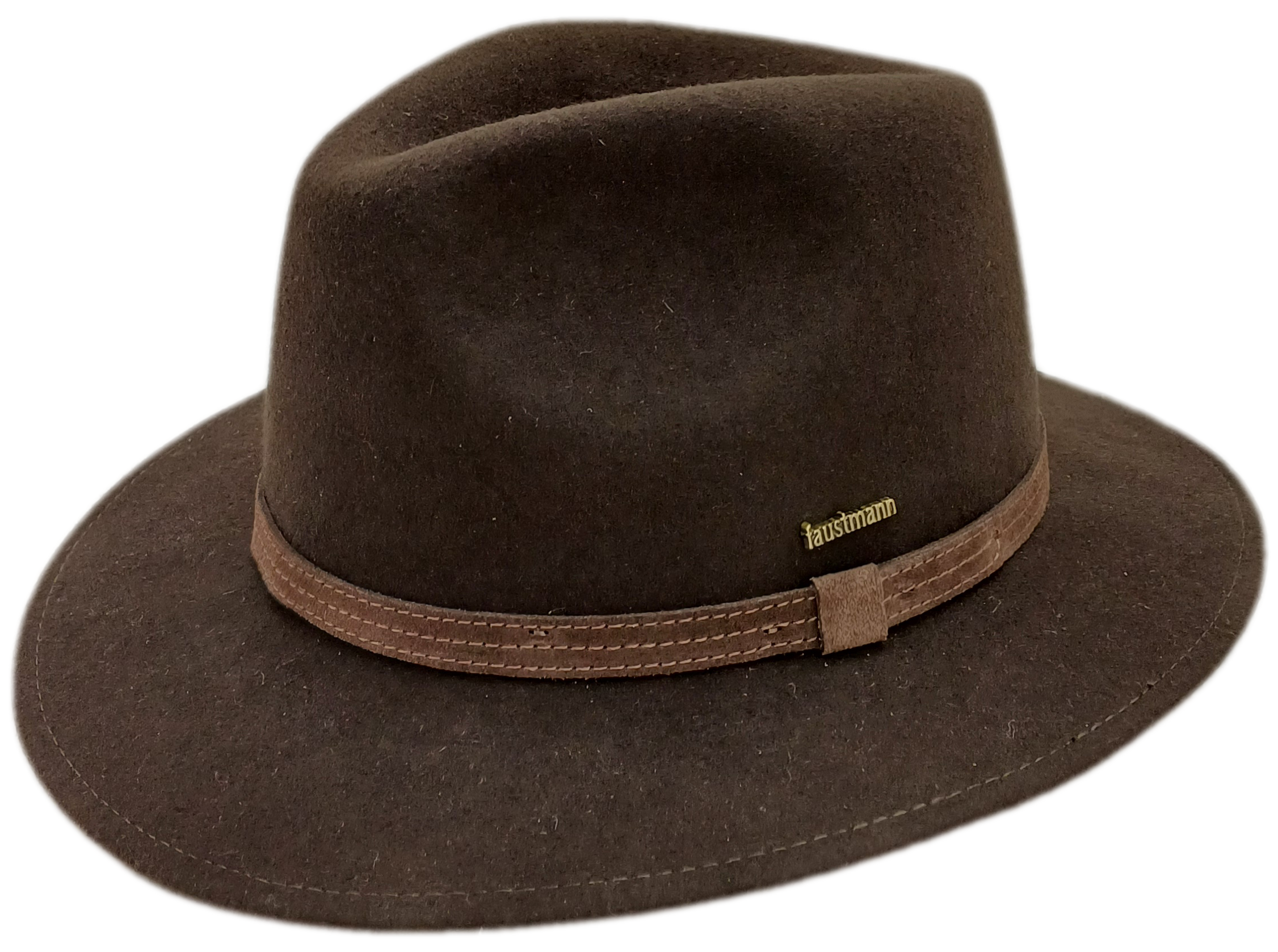 Herrenhut in braun mit farblich passendem Kunstlederband.