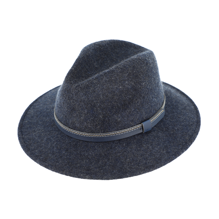 Herrenhut in anthrazit mit blauem Kunstlederband.
