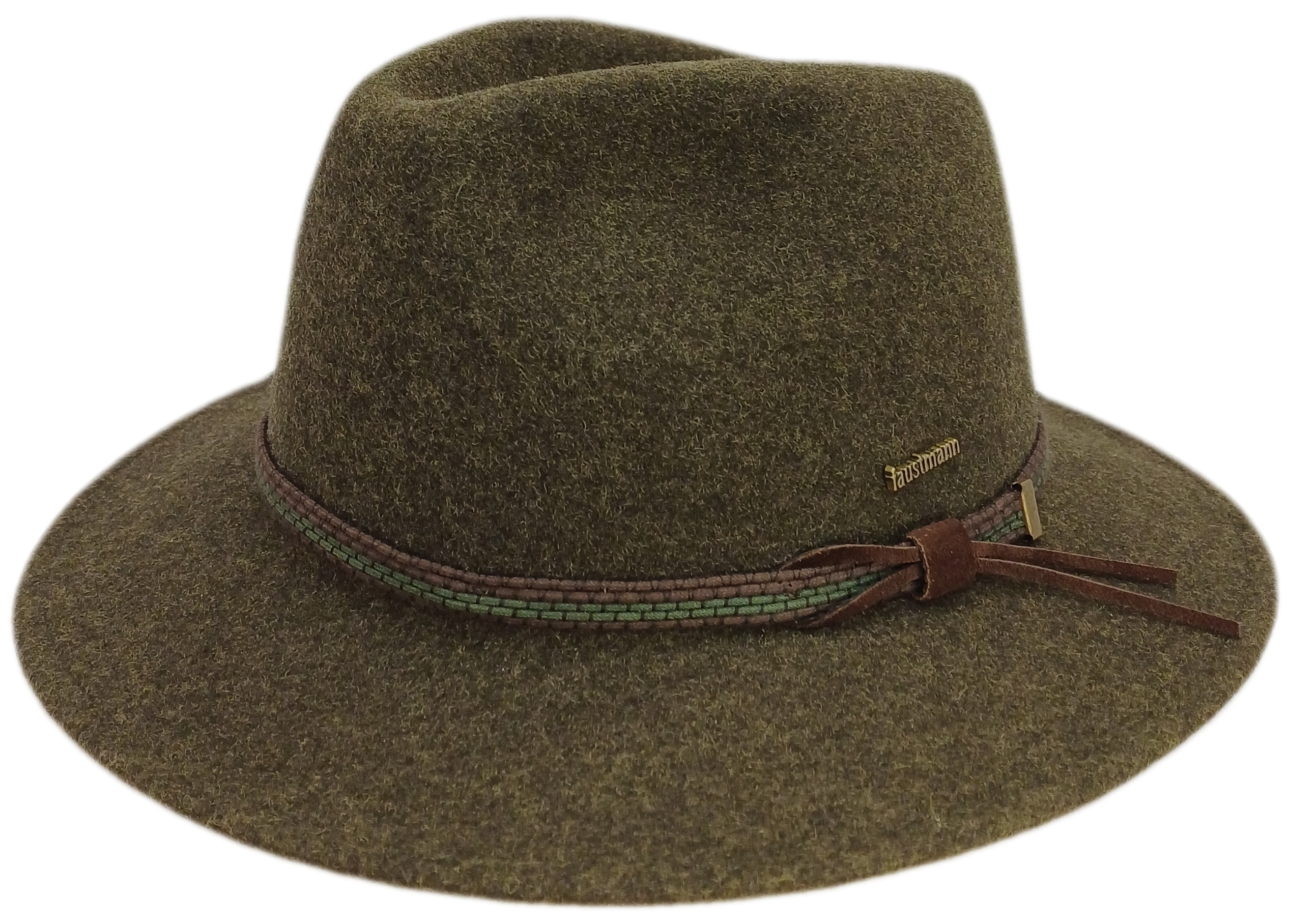 Herrenhut in oliv-grün meliert, mit passendem Kunstlederband.