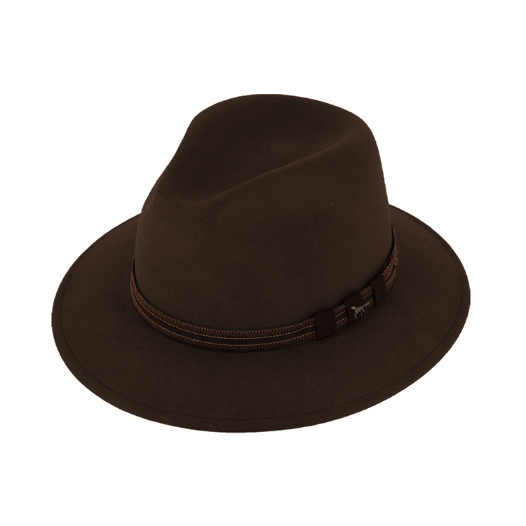Herrenhut in braun mit braunem Kunstlederband und Hundepin
