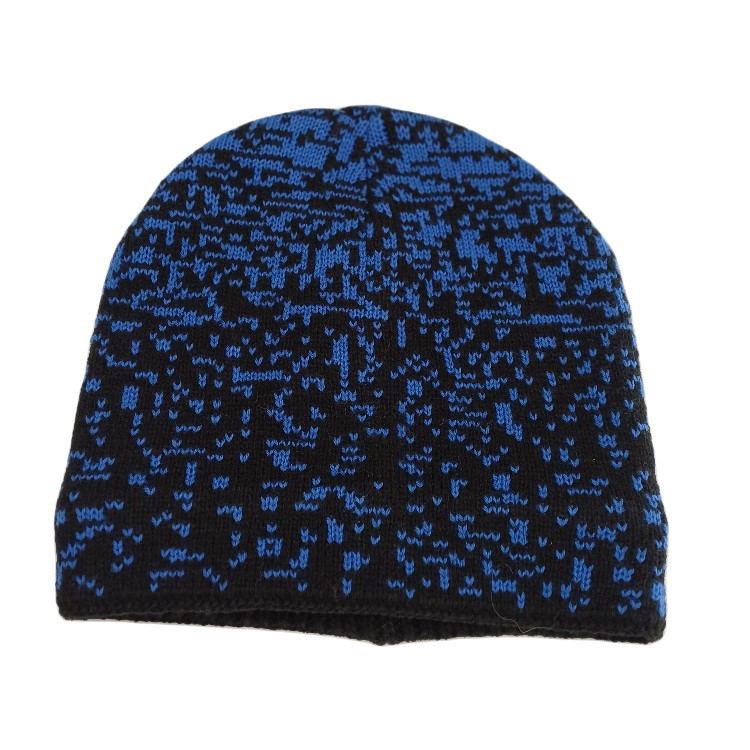 Herrenmütze in blau, schwarz gemustert und mit Flecce ausgefüttert.