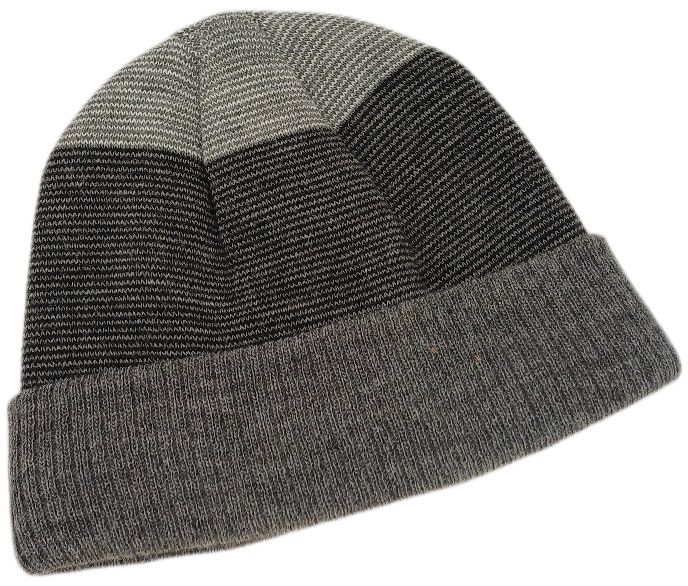 Herrenmütze in grau, anthrazit gestreift mit Strickfutter.