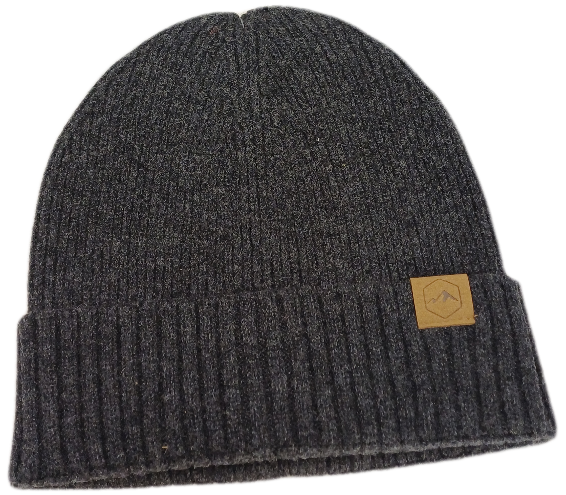 Herrenmütze aus reiner Merinowolle in anthrazit mit Kunstlederaufnäher