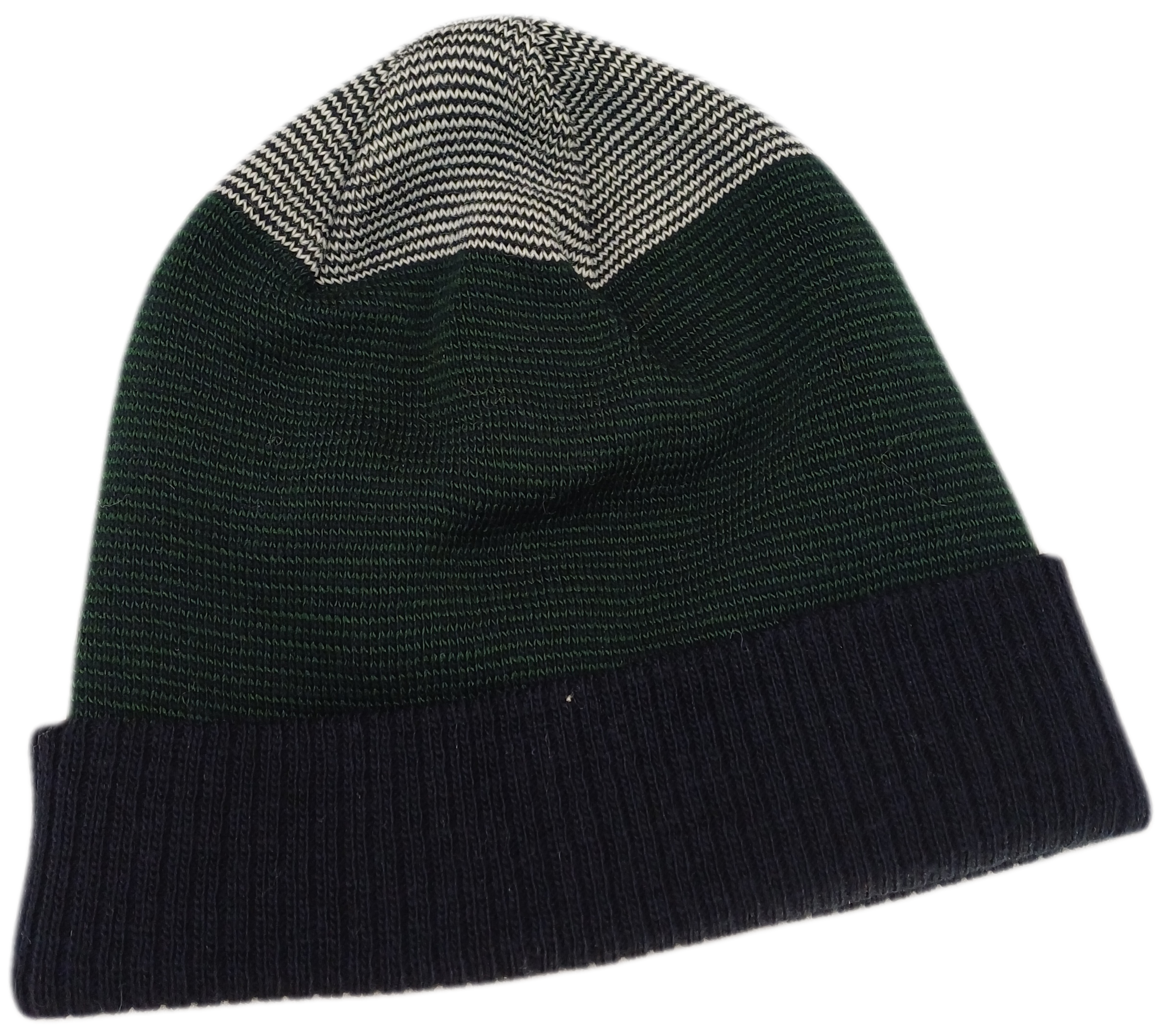 Herrenmütze in grau, grün, blau gestreift mit Strickfutter.