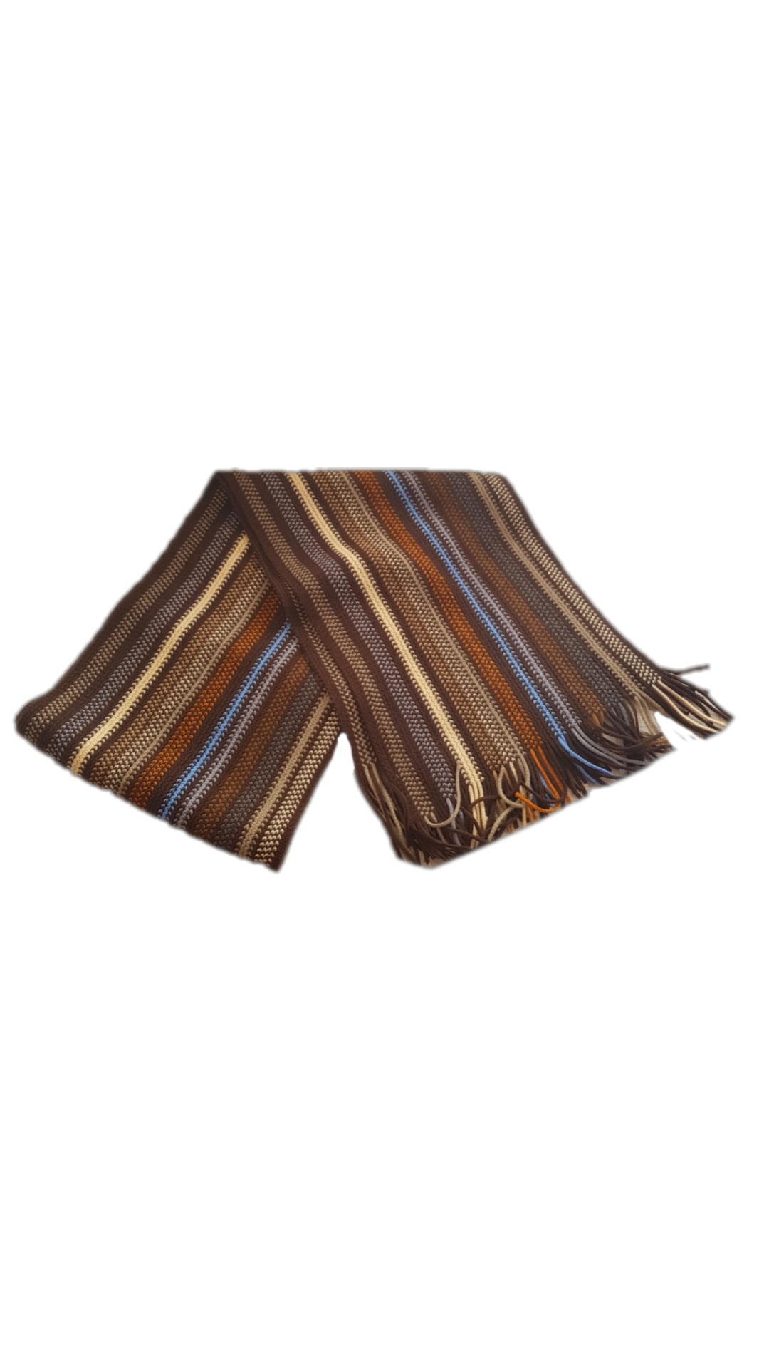 Schal mit Strickmuster und Fransen in braun und blau gestreift