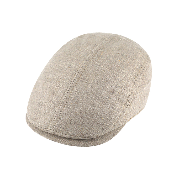 Schiebermütze aus reinem Leinenstoff, in beige mit passendem Schirm und Ziernähten