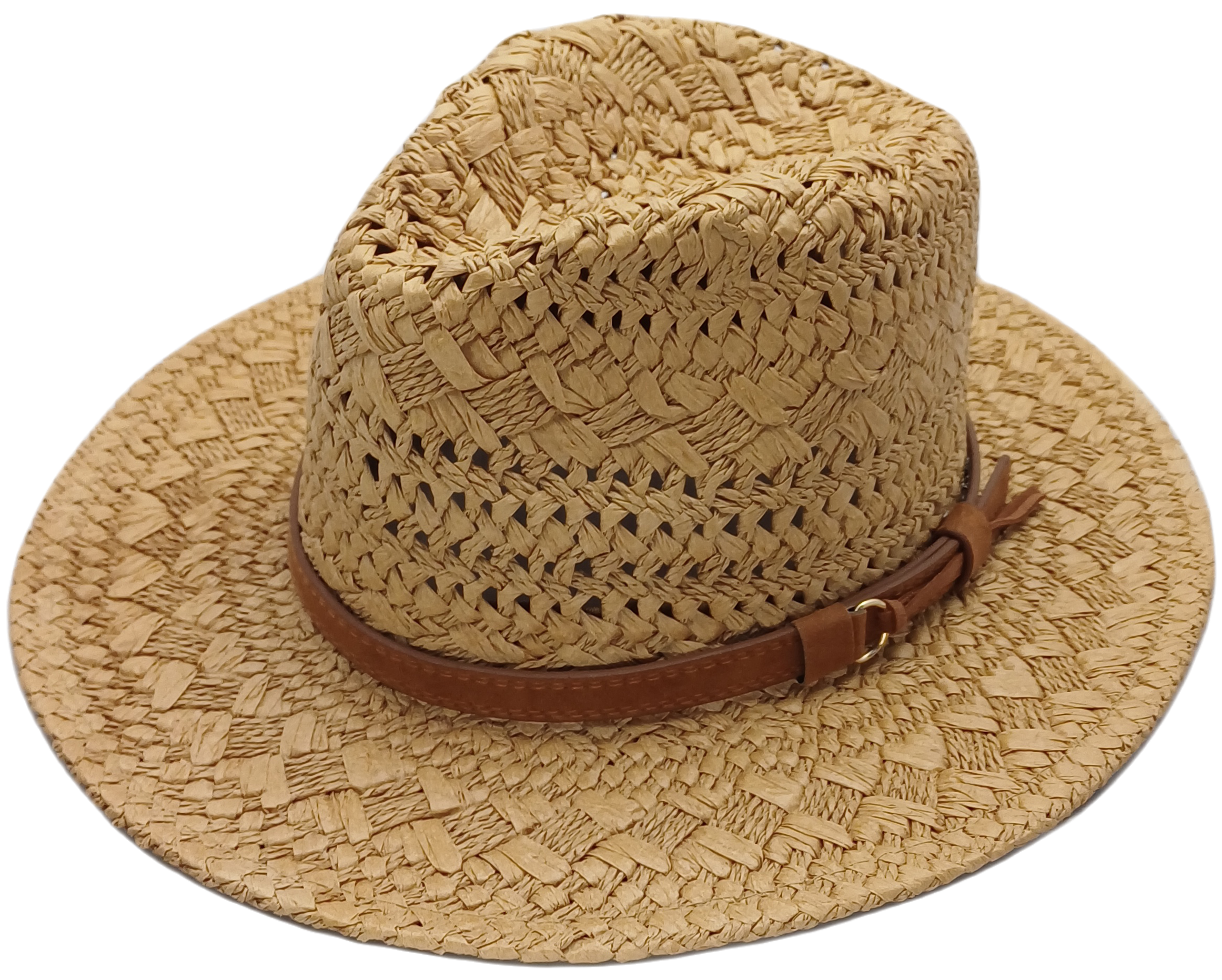 Sommerhut aus widerstandsfähigem Papier in braun mit passendem Kunstlederband.