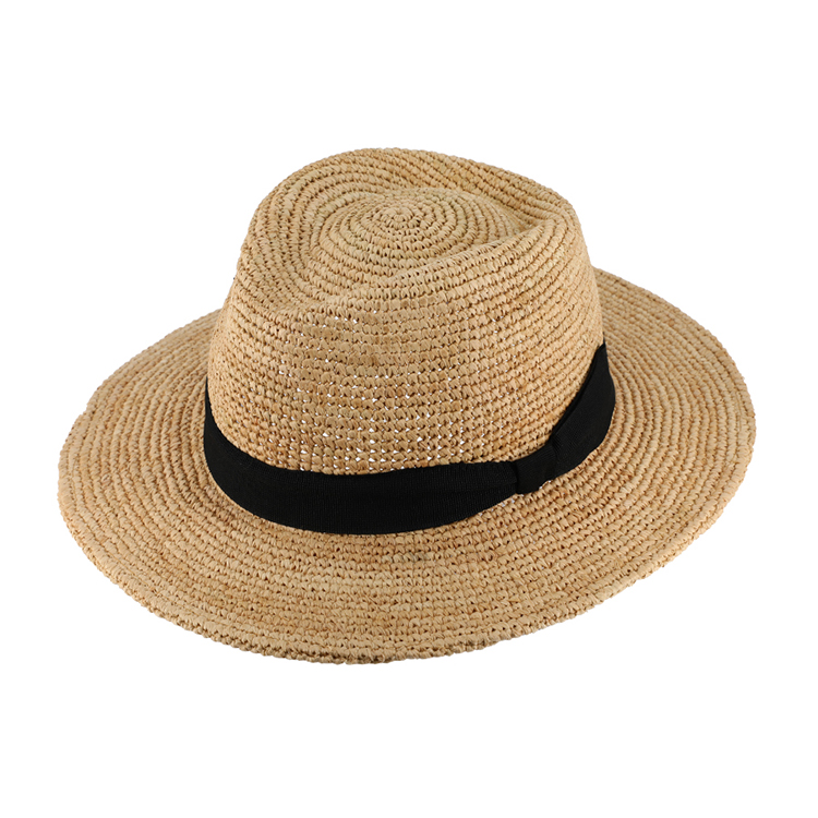 Eleganter Strohhut aus Raffia-Stroh mit schwarzem Ripsband