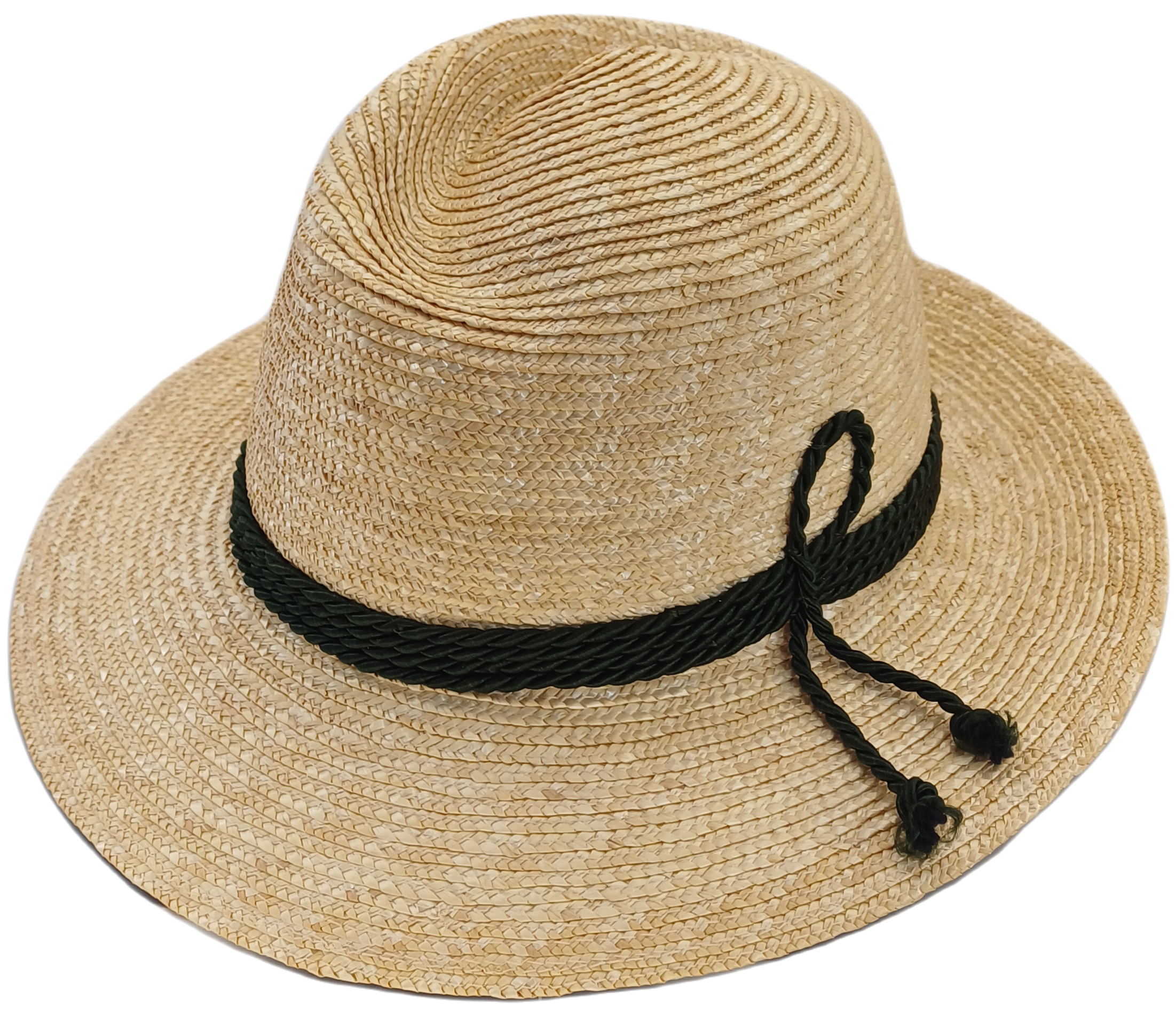 Trachtenhut aus Strohborte in natur mit grüner Kordel.