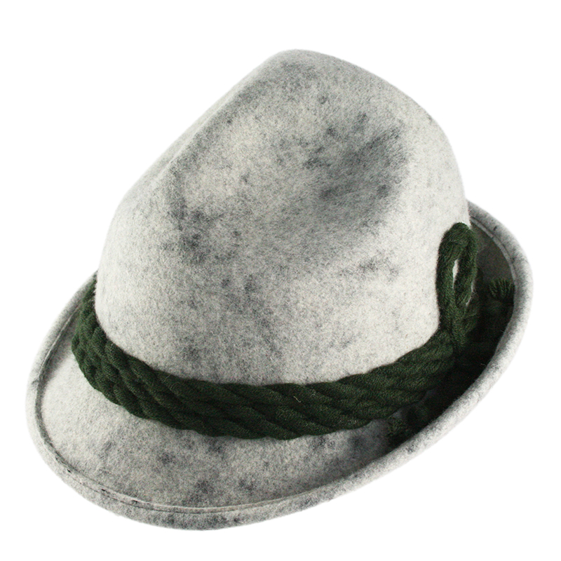 Herrenhut in grau meliert mit grüner Wollkordel.