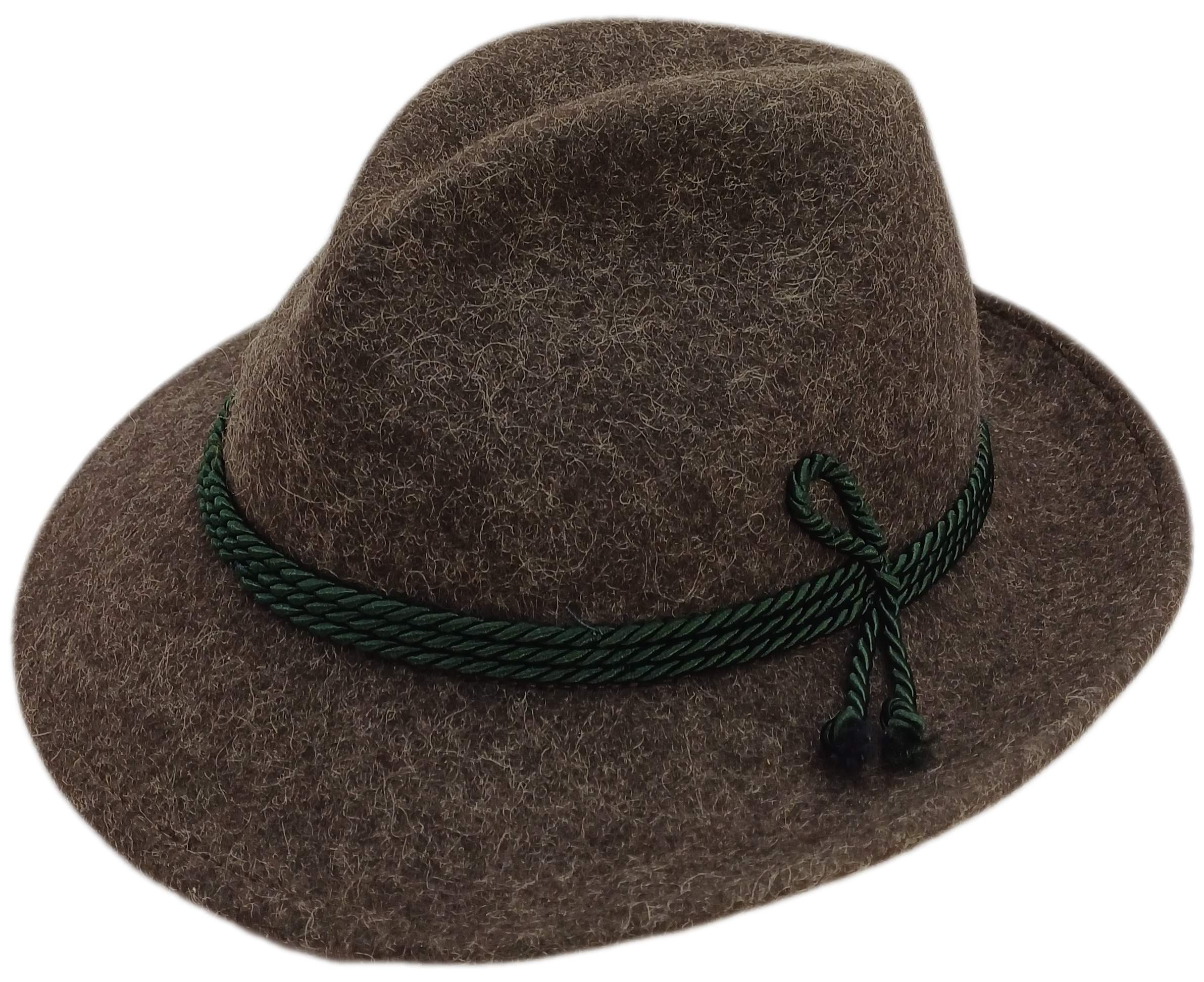Trachtenhut in braun-melange mit grüner Seidenkordel.