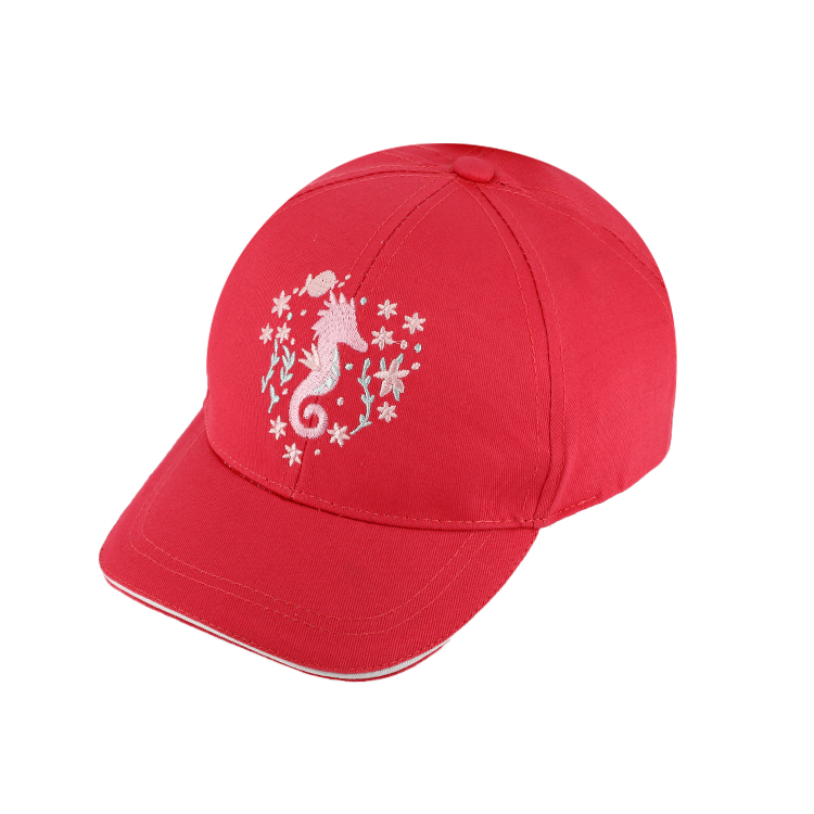 Kinderkappe in pink mit Seepferdchen bestickt.