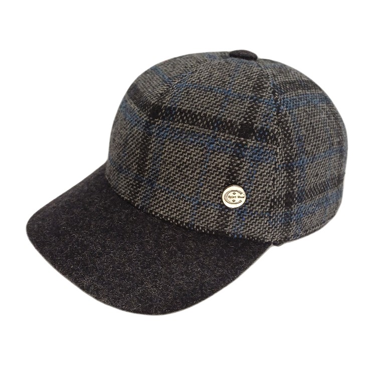 Herrenkappe in blau, grau gemustert mit anthrazitem Schirm.