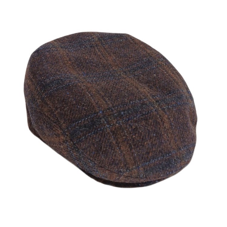 Schiebermütze in blau, braungemustert