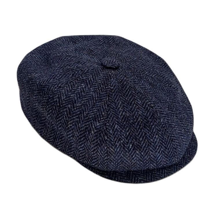 Schiebermütze in blau, mit Fischgratmuster. Hergestellt in Deutschland (Bamberg)