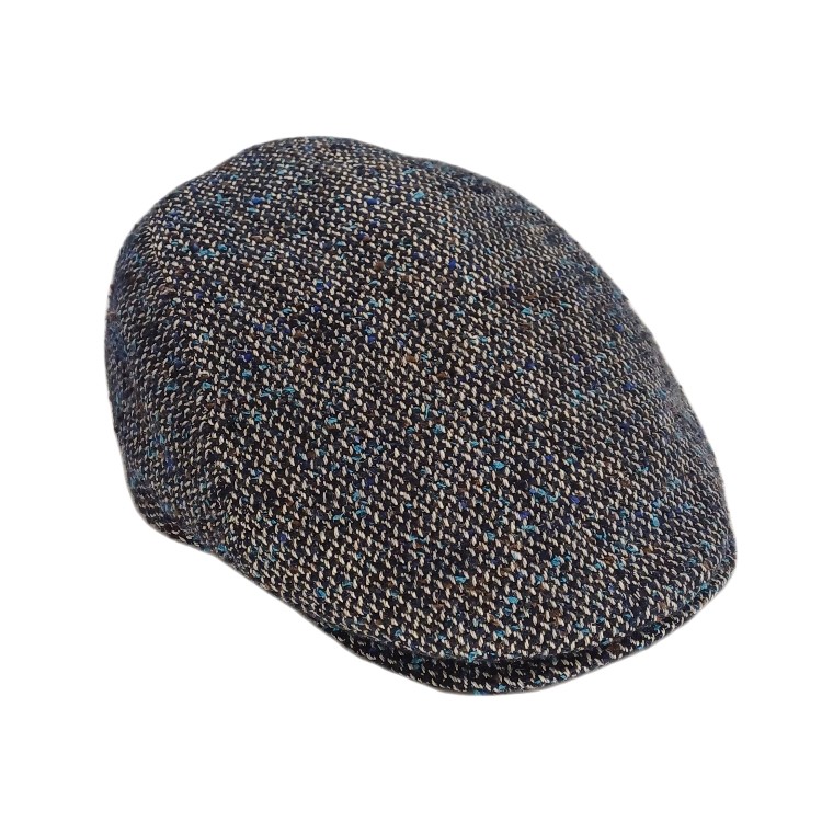 Schiebermütze in schwarz, weiß, blau gemustert mit Steg für eine optimale Passform.