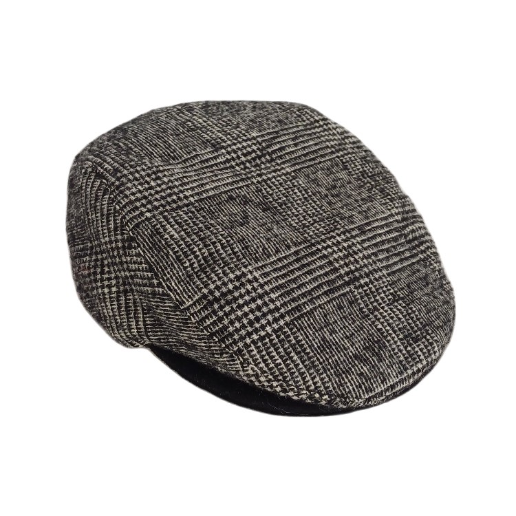 Schiebermütze in schwarz weiß gemustert mit schwarzem Schirm und gleich farbigem Steg.