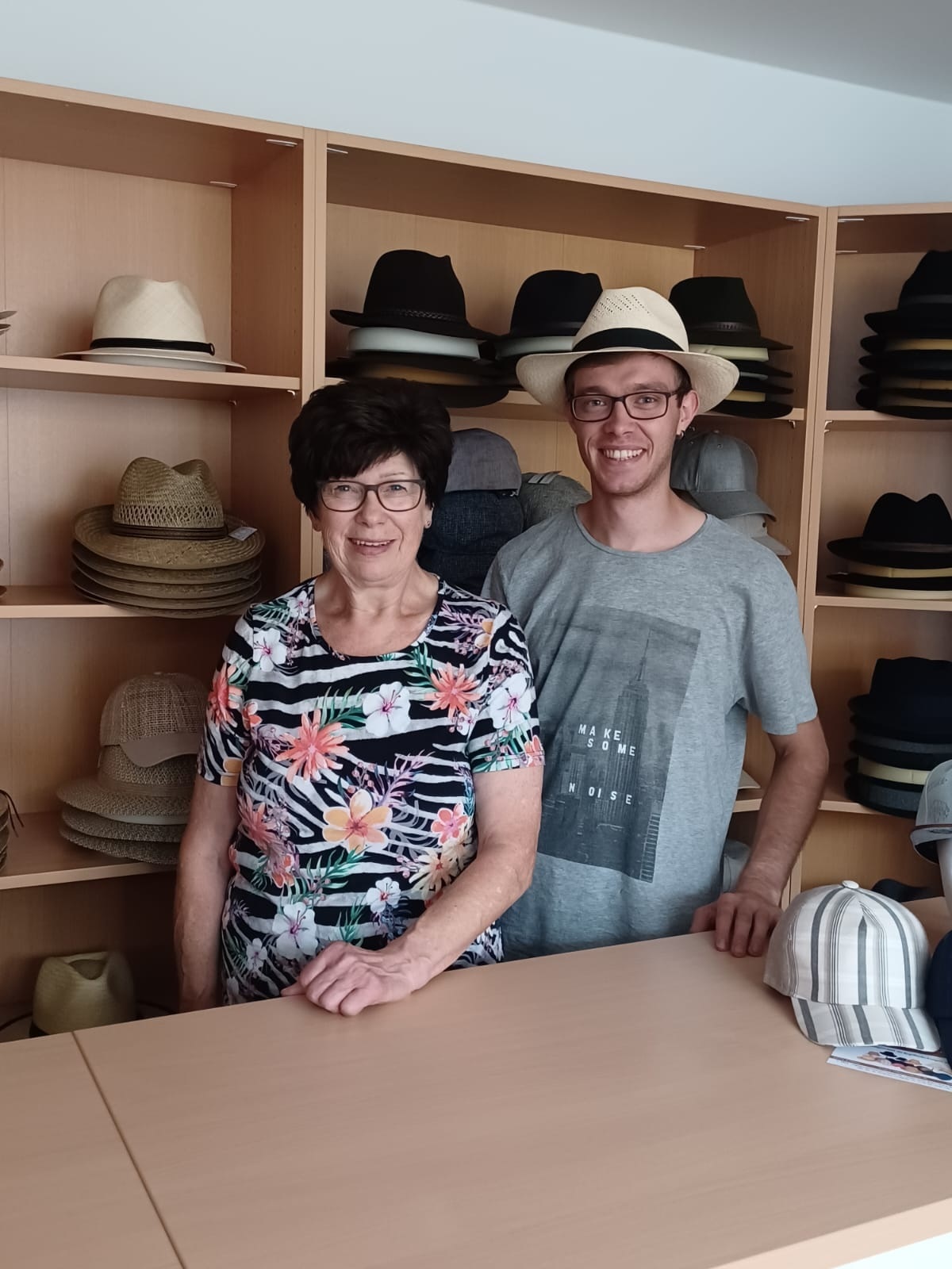 Durch das Hochwasser waren alle Familienbilder nass und voller Schlamm, Viele hätten die Fotos einfach weggeschmissen, aber Enkel Tobias hat alle Bilder zusammengepackt und Zuhause gewaschen und getrocknet. So konnte er alle Bilder retten und fing an sich für die Menschen auf den Bilder zu interessieren. Nun fing er an, in den Kirchenbücher der Diozöse und in alten Katasterauszügen zu forschen und bemerkte so dass seine Vorfahren das Geschäft 1862 kauften und die erste Aufzeichnung des Geschäfts bis ins Jahr 1659 zurückreichen. Mit dieser Erkentniss beschloss Tobias die Tradition nicht abreißen zu lassen. Nach 5 Jahren Forschung und Gedankenspielerei meldete er nun 2021 einen online-Handel an. Nach wenigen Monaten beschloss er auch den Laden wieder aufzuserren, wie er es aus Kindertagen von seiner Oma wusste. Vorerst wurden nur notdürftig einige Haushaltsregale aufgestellt, aber nach und nach wurde der Laden wieder ähnlich eingerichtet wie vor dem Hochwasser. Nach einem Jahr in dem das Geschäft wieder anlaufen konnte, hatten wir auch einen Stand auf dem örtlichen Christkinldmarkt. Auch hatten wir das zweite Jubilämum in einem Jahr zu feiern. Denn am 08. März war das Geschäft 160 Jahre in Familienbesitz und im Dezember stand die Seniorcheffin Inge 55 Jahre im Laden. Niemand stand in über 360 Jahren Geschäftsbestehen länger hinter der Ladentheke als sie. Durch etwas Gedankenspielerei und viel Tradition wurde eines der älteste Geschäfte im Ort und das einzige Fachgeschäft für Kopfbedekungen im Landkreis wieder belebt. Zum jetzigen Zeitpunkt betreiben wir das Geschäft in Triftern, den online-shop und stehen auf Warenmärkten in der Umgebung. Auf diese Weise verkaufen wir Hüte aus Filz und Stroh, Kappen sowie Mützen, Schal und Handschuhe in allen Formen und Farben für Damen, Herren und Kinder. Auf Anfage sind auch beschriftete Hüte und Mützen, Hutanstecker, Federn oder Gamsbärte für Vereine, Firmen oder andere Gruppen kein Problem.